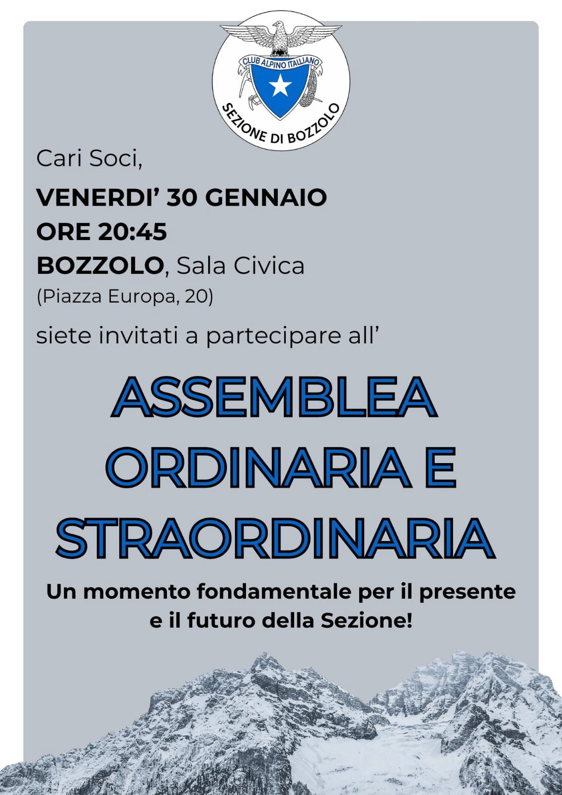 Cari soci, vi invitiamo a partecipare all'ASSEMBLEA ANNUALE, e alla successiva ASSEMBLEA STRAORDINADIA DEGLI ASSOCIATI, che si svolgeranno venerdì 30 gennaio alle ore 20.45 presso la Sala Civica di Bozzolo, in Piazza Europa n.20 .
